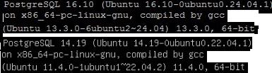 | Версии ОС и Postgre ruvds lsb_release -a 24.04 LTS noble timeweb