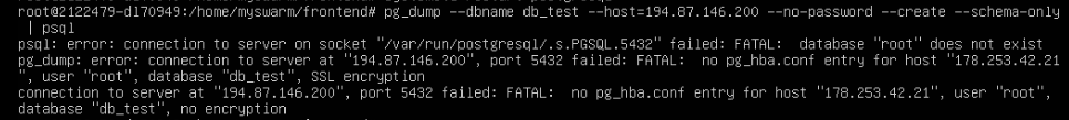 Ожидаемо, по умолчанию через root подключается Добавил -U postgres, теперь говорит версии не сопадают. Тоже ожидаемо. ОК, будем по друргому |